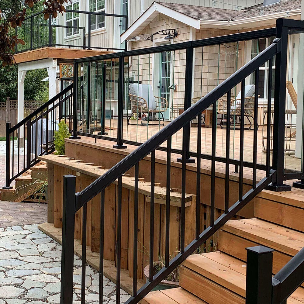 The simple lines and black powder-coated finish suit a wide range of homes, from traditional to modern. Once planned and installed, the result is a solid, well-defined edge that improves both safety and appearance.